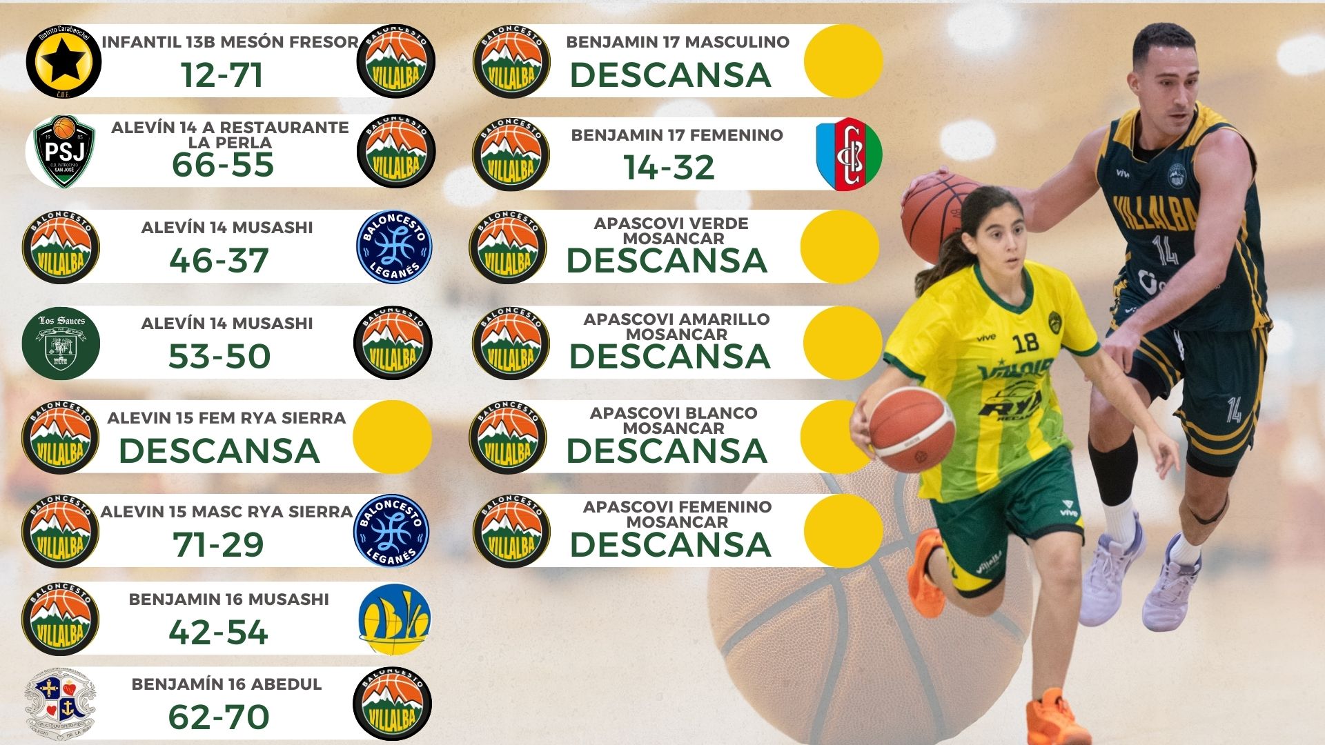 Aquí os dejamos los resultados de nuestros equipos del fin de semana