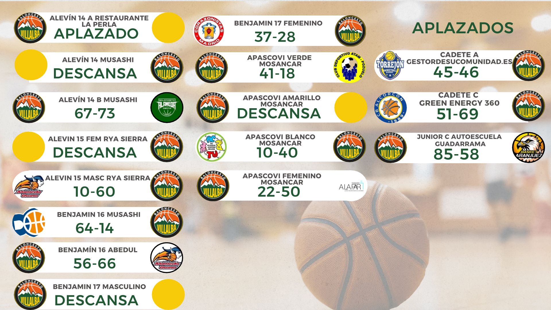 Os dejamos los resultados de nuestros equipos para el fin de semana del 21-22 de febrero