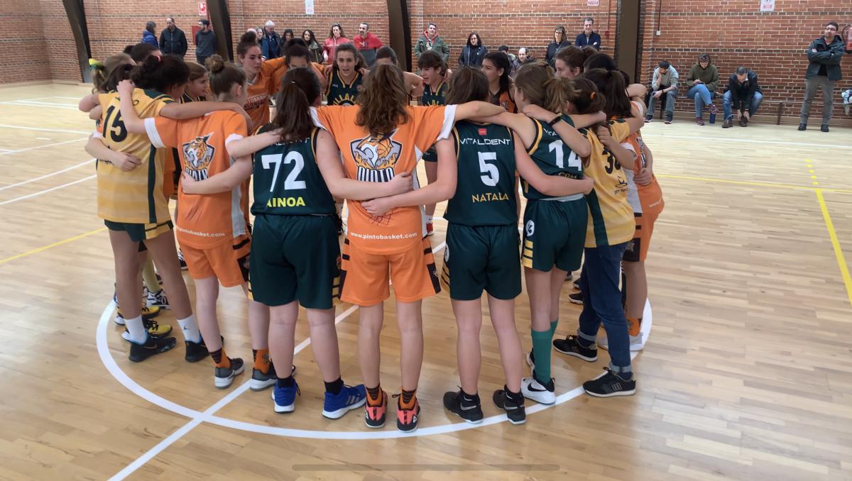 Fantásticas las infantiles de Pinto haciendo piña al final de partido conjuntamente con nuestras infantiles B