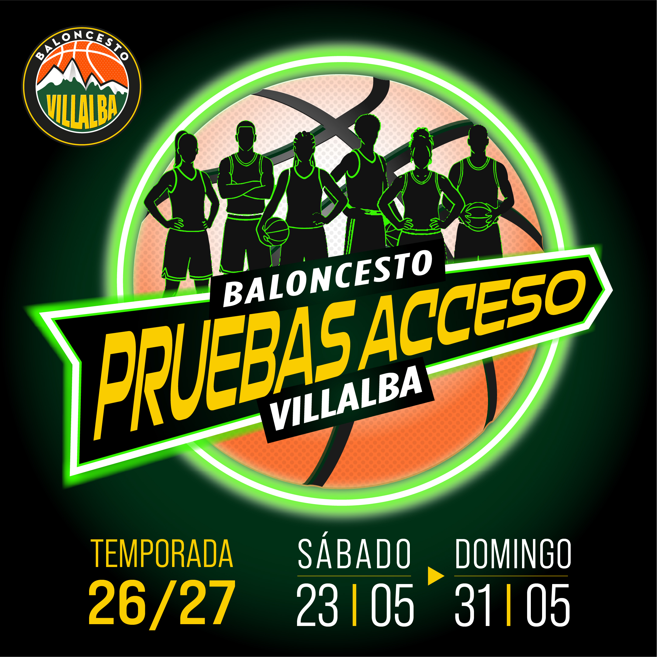 Los actuales jugadores federados de Baloncesto Villalba NO necesitan inscribirse a las pruebas.